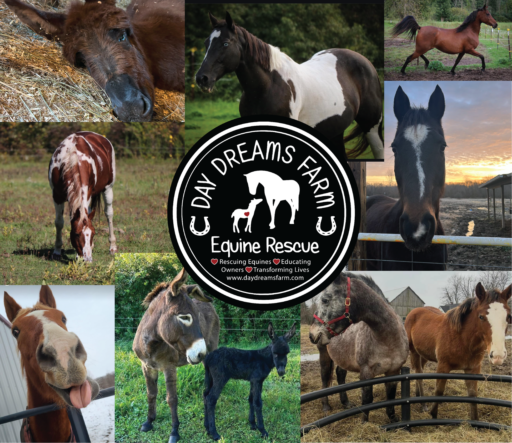 A large portion of proceeds go directly to Day Dreams Farm Equine Rescue and Rehabilitation Learn More Here